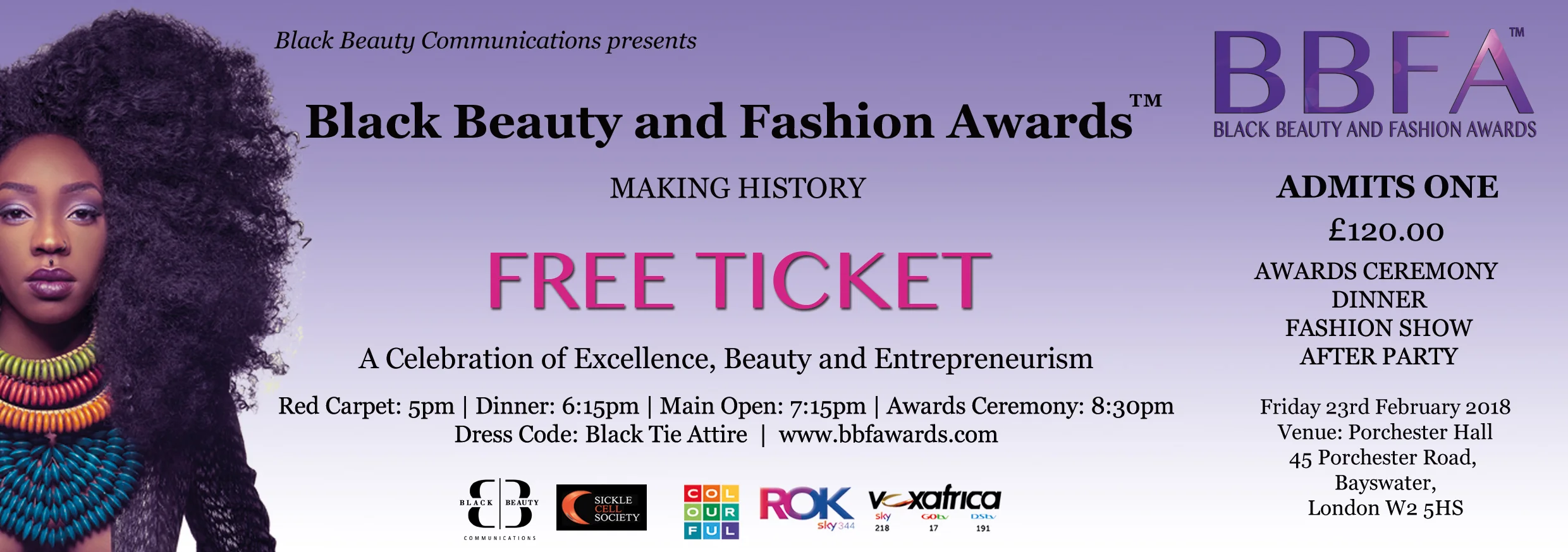 Be the lucky WINNER of 2 VIP tickets to attend the Black Beauty and Fashion Awards on Friday 23rd February 2018.