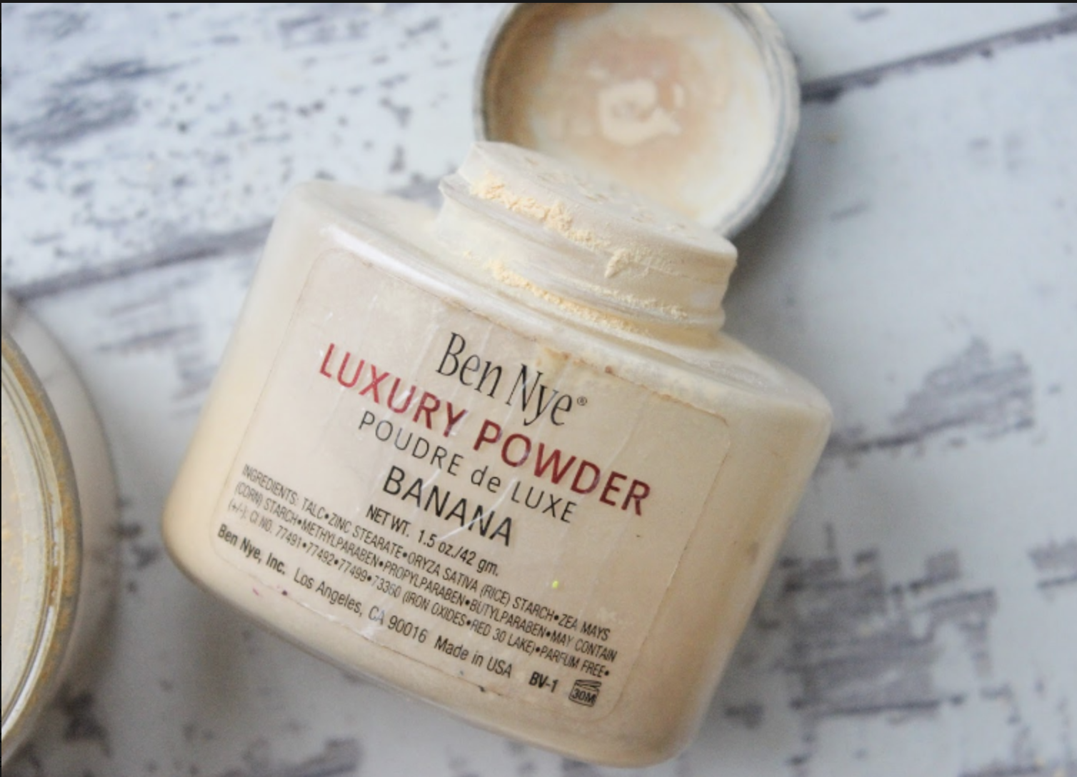 La poudre de banane Ben Nye originale existe depuis quelques années et ce produit est un élément de base dans l'industrie depuis un certain temps. Cette poudre est finement moulue à base de talc qui matifie la peau sans laisser de voile poudreux sur celle ci.